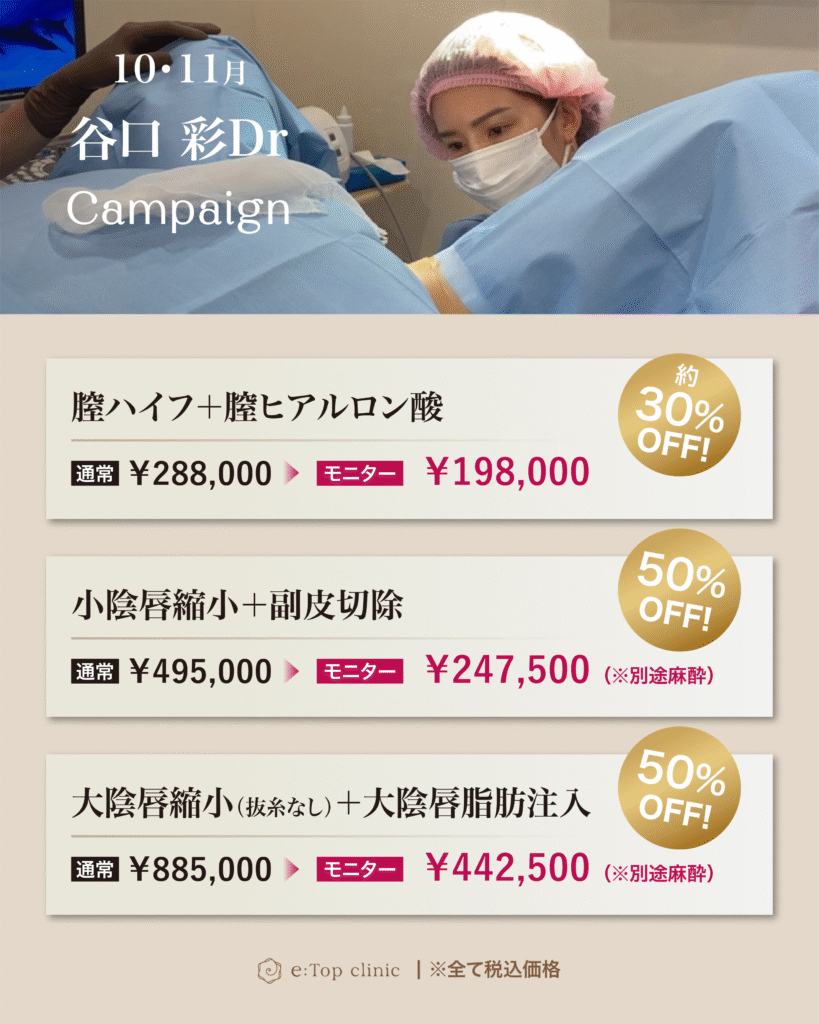 大人気の「膣ハイフ+膣ヒアルロン酸」 そして「小陰唇縮小+副皮切除」「大陰唇縮小+大陰唇脂肪注入」
