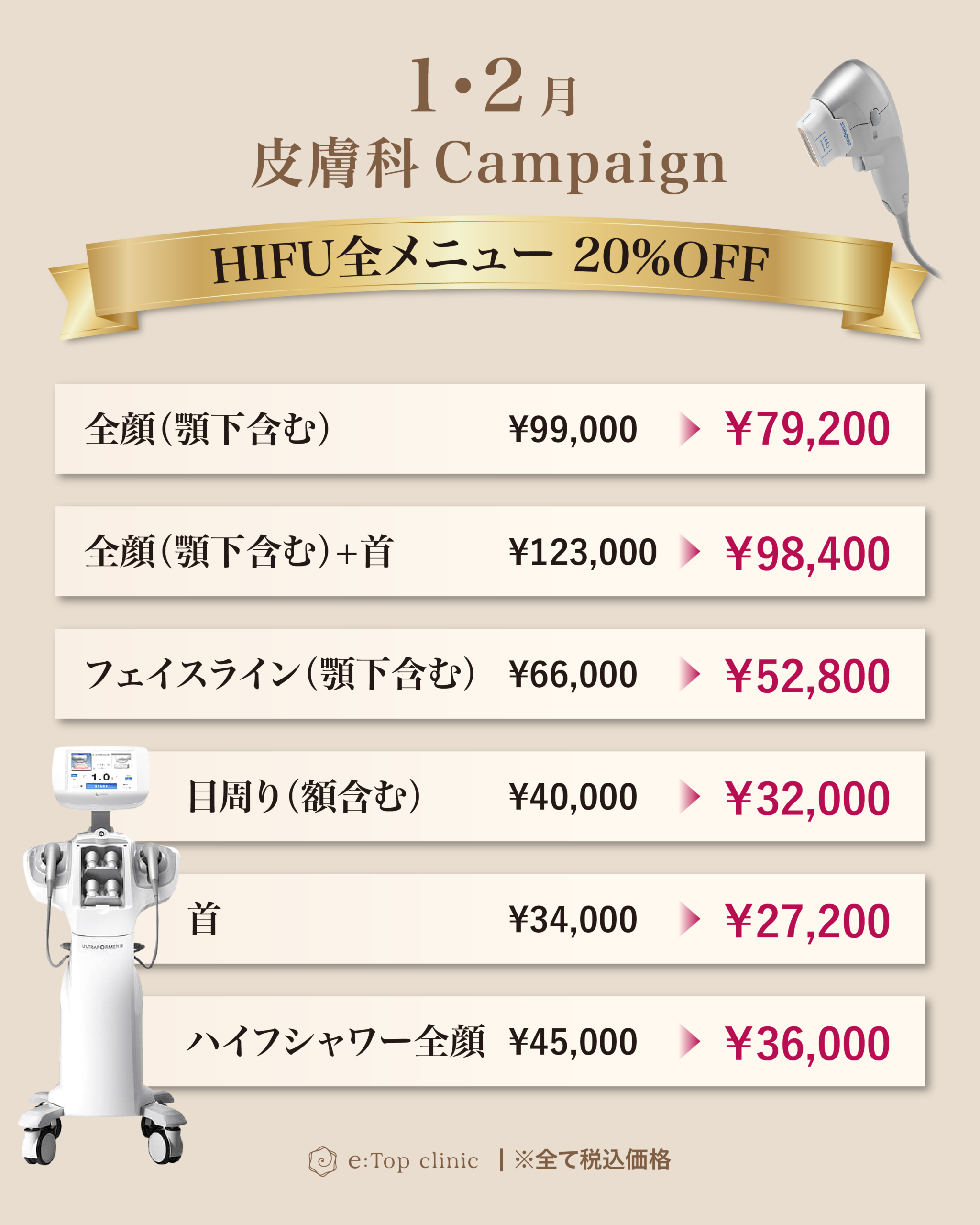HIFUが全メニュー20%OFFでお得に受けられます✨