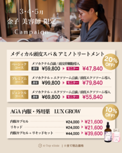【3・4・5月】メディカル頭皮スパ&アミノトリートメント・AGA薬キャンペーン