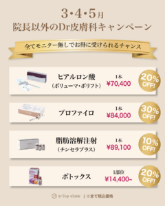 【3・4・5月】院長以外のドクターの皮膚科注入処置キャンペーン✨