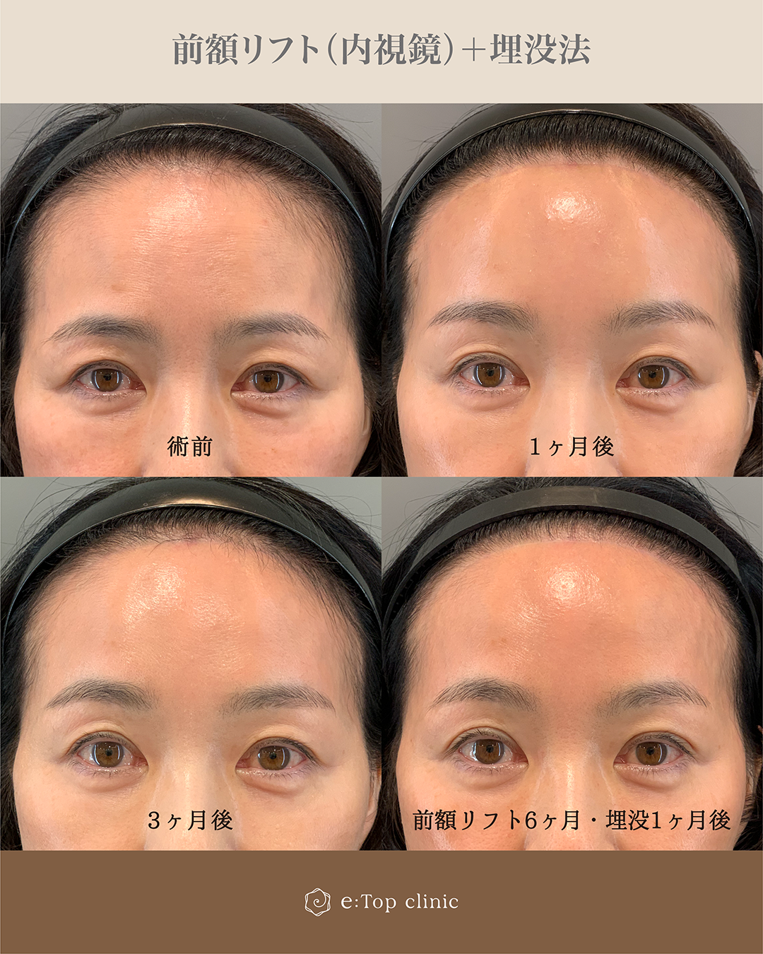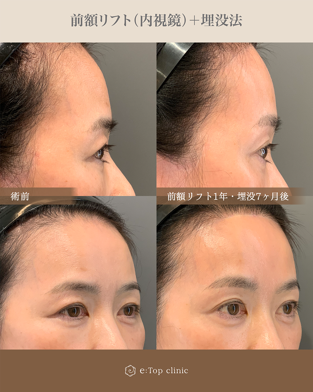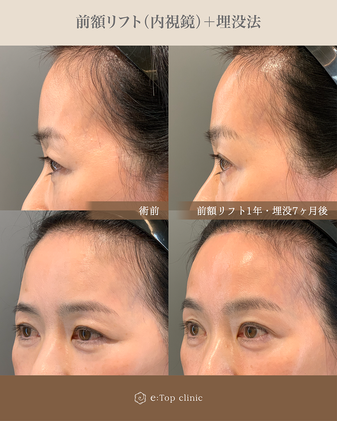 術後は、額のシワが減り、瞼がスッキリとしてたるみが改善してとても嬉しい、と仰っていただきました。