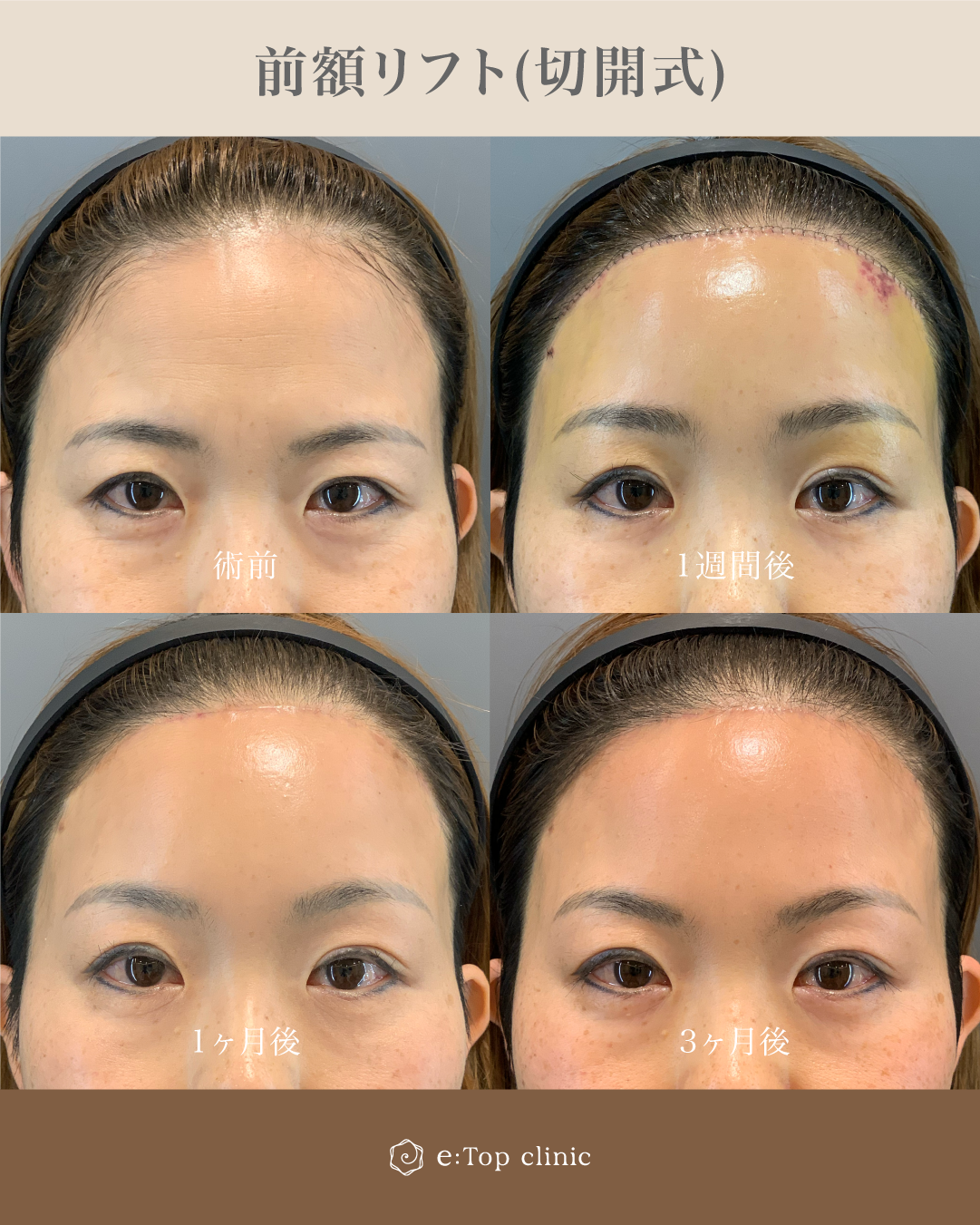 切開式前額リフトにより、額にハリが出てお悩みだった額の横ジワが改善しました。