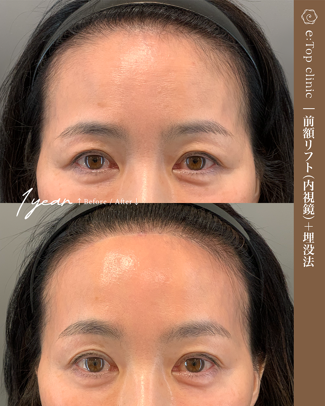 1年ほど前から頭痛、肩こり、目を開ける際に額に寄るシワにお悩みだったお客様です。 まぶたをあげる眼瞼挙筋と呼ばれる筋肉の働きが悪くなってしまうと、まぶたが下がり目があけづらいという状態になってしまいます。 美しい目の条件は、黒目が9割方見える状態です。 術後は、お悩みだった、頭痛、肩こりなどの症状も顔依然され、黒目・まつ毛のキワがしっかり見えるようになり綺麗なお目元に仕上りました。