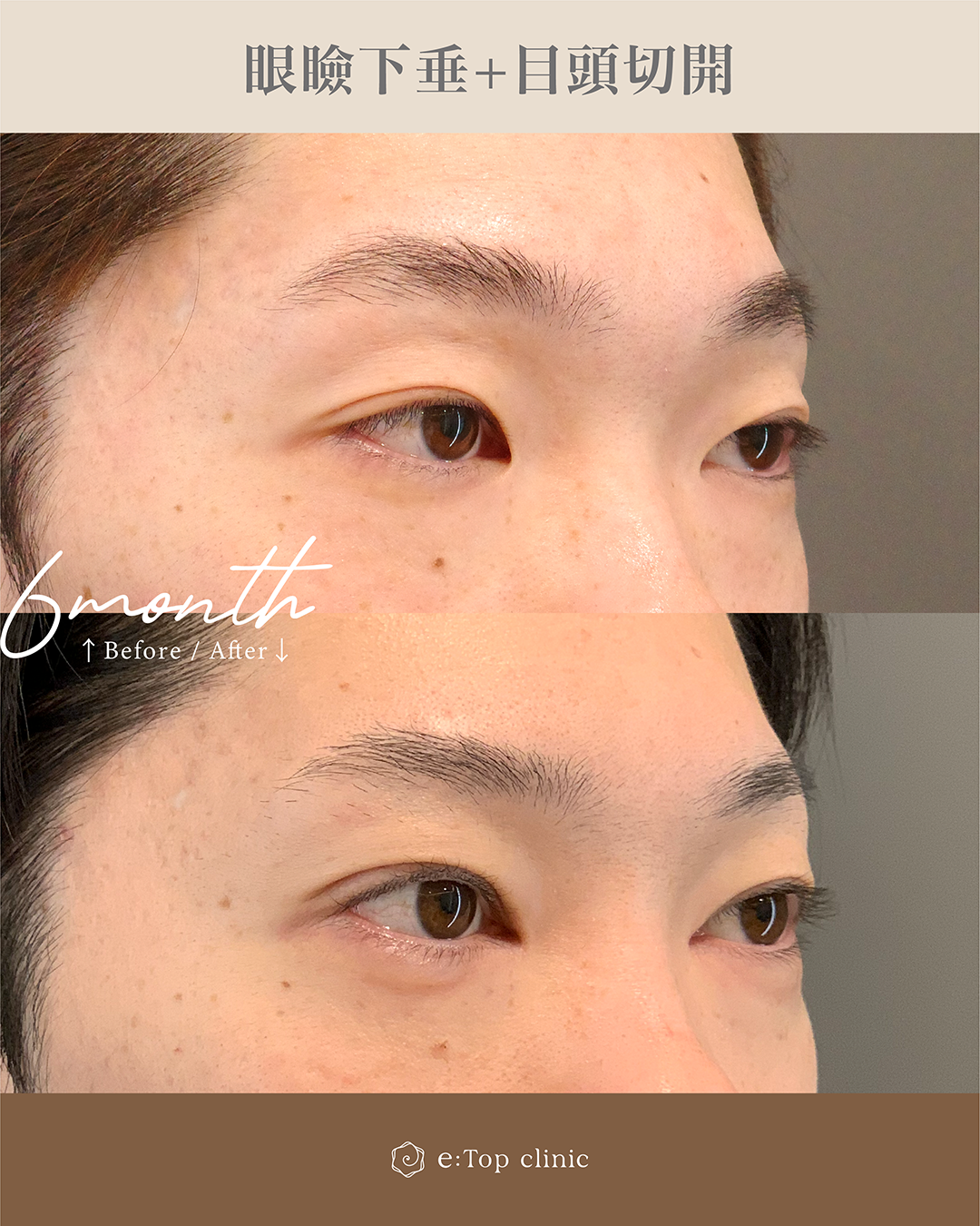 目の開きを良くするために眼瞼下垂、離れ目かつ蒙古ヒダがあるのでそれを改善するために目頭切開でご提案。