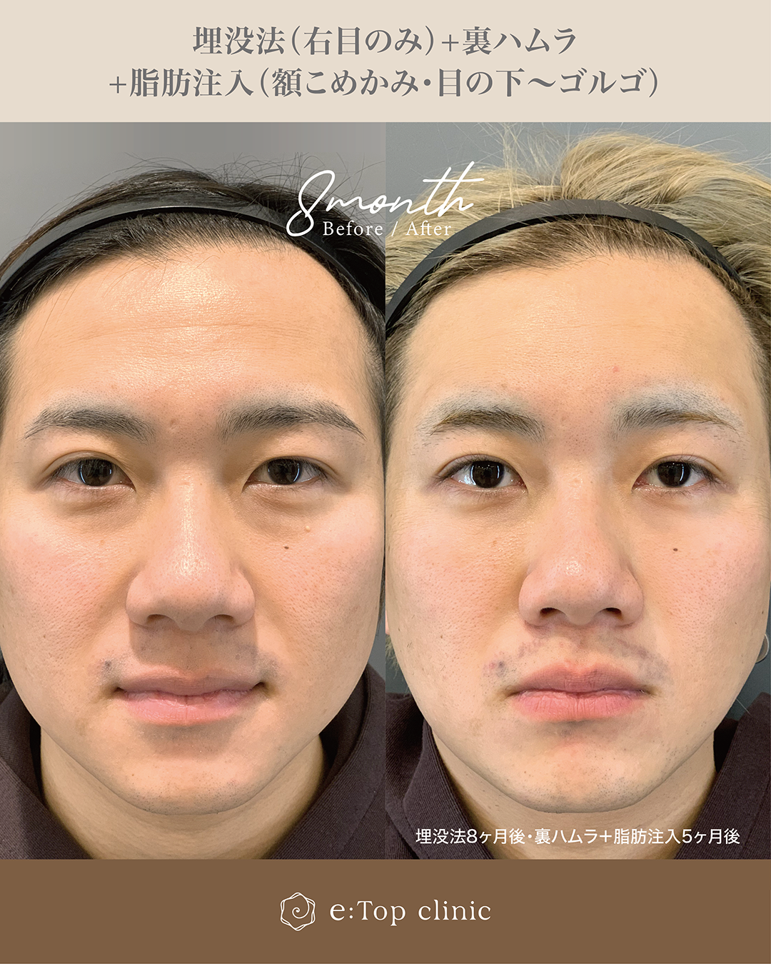 脂肪注入で額・こめかみ・頬をふっくらとさせ、プロテーゼで鼻筋も整い横から見てもとても美しい輪郭になりました。