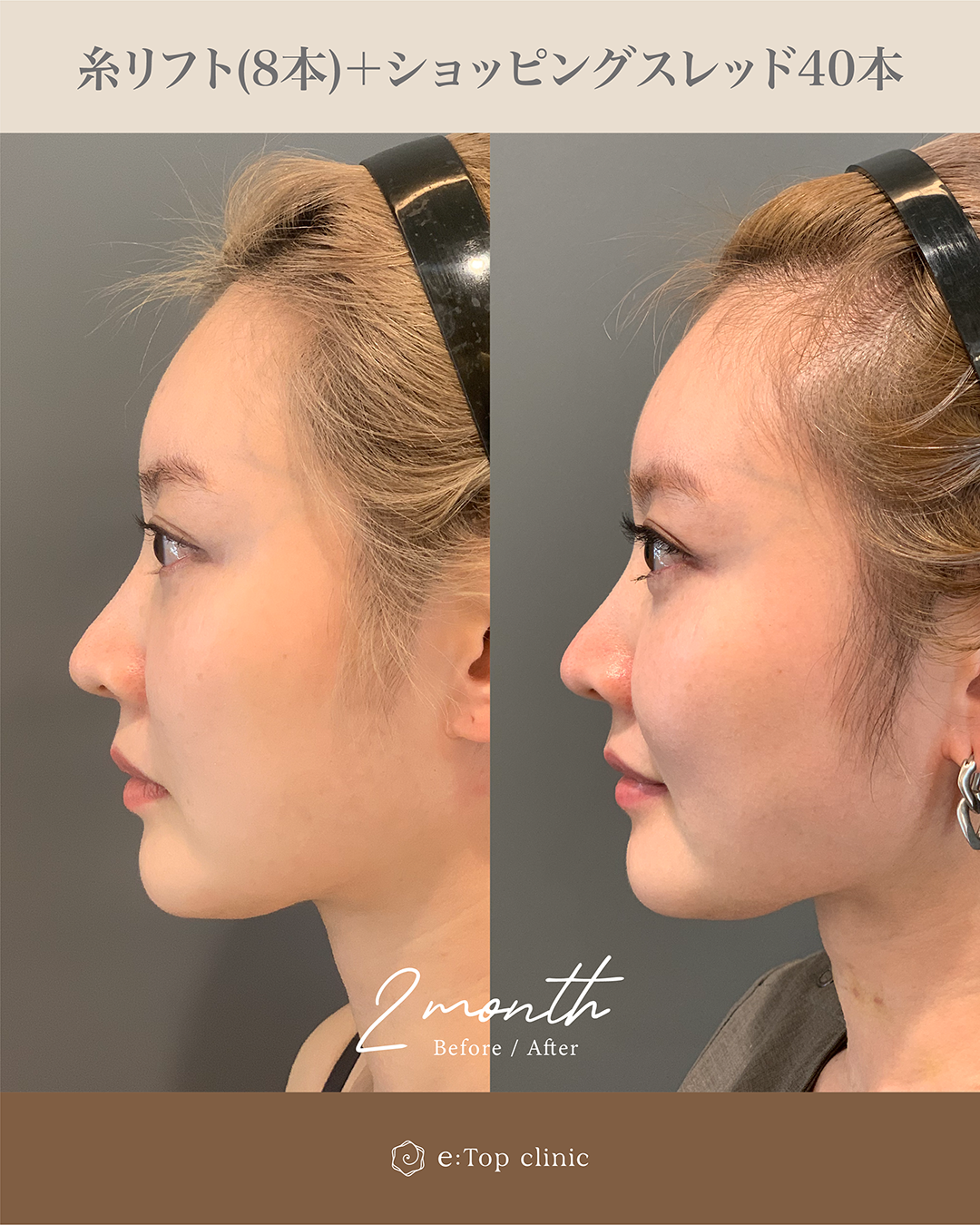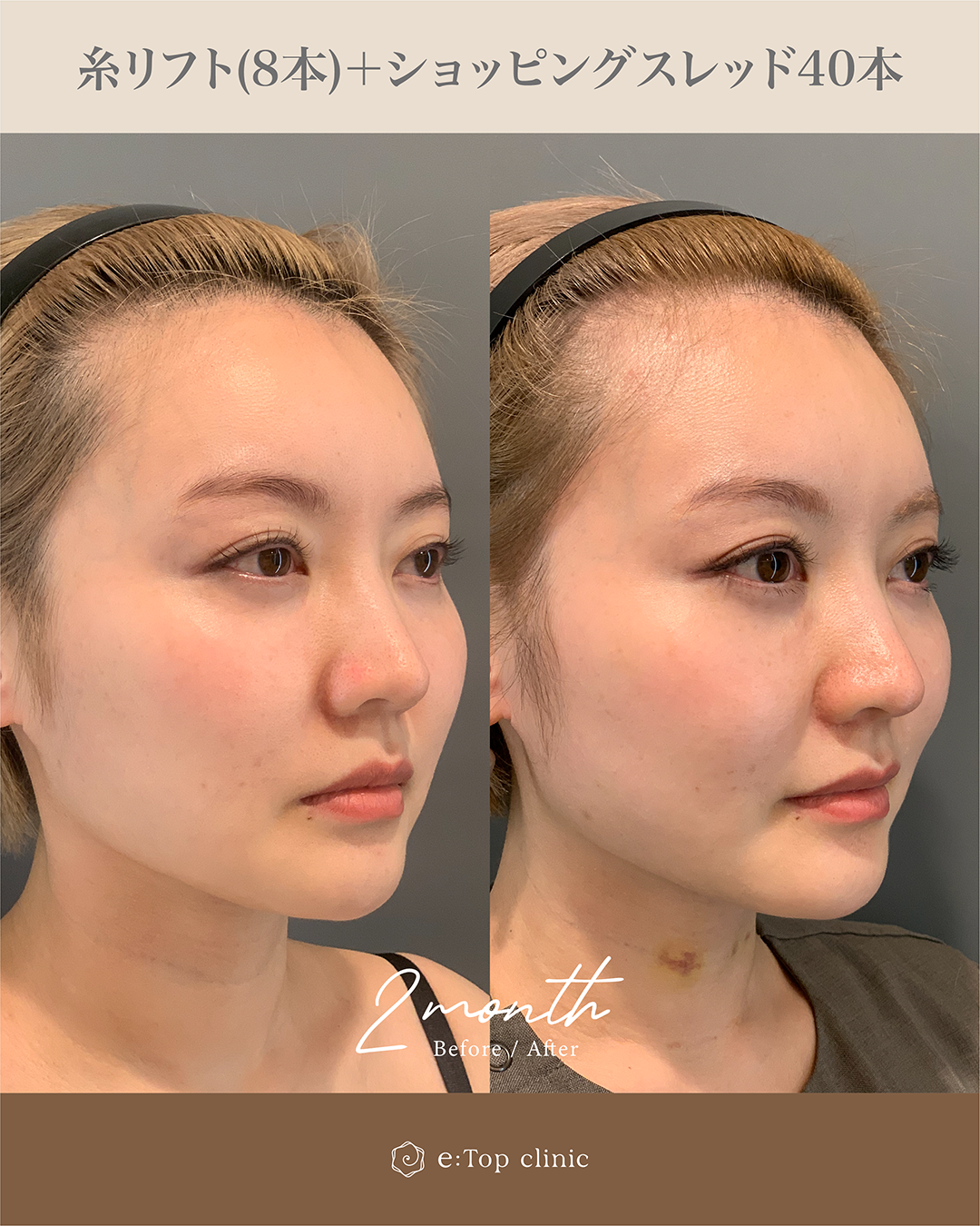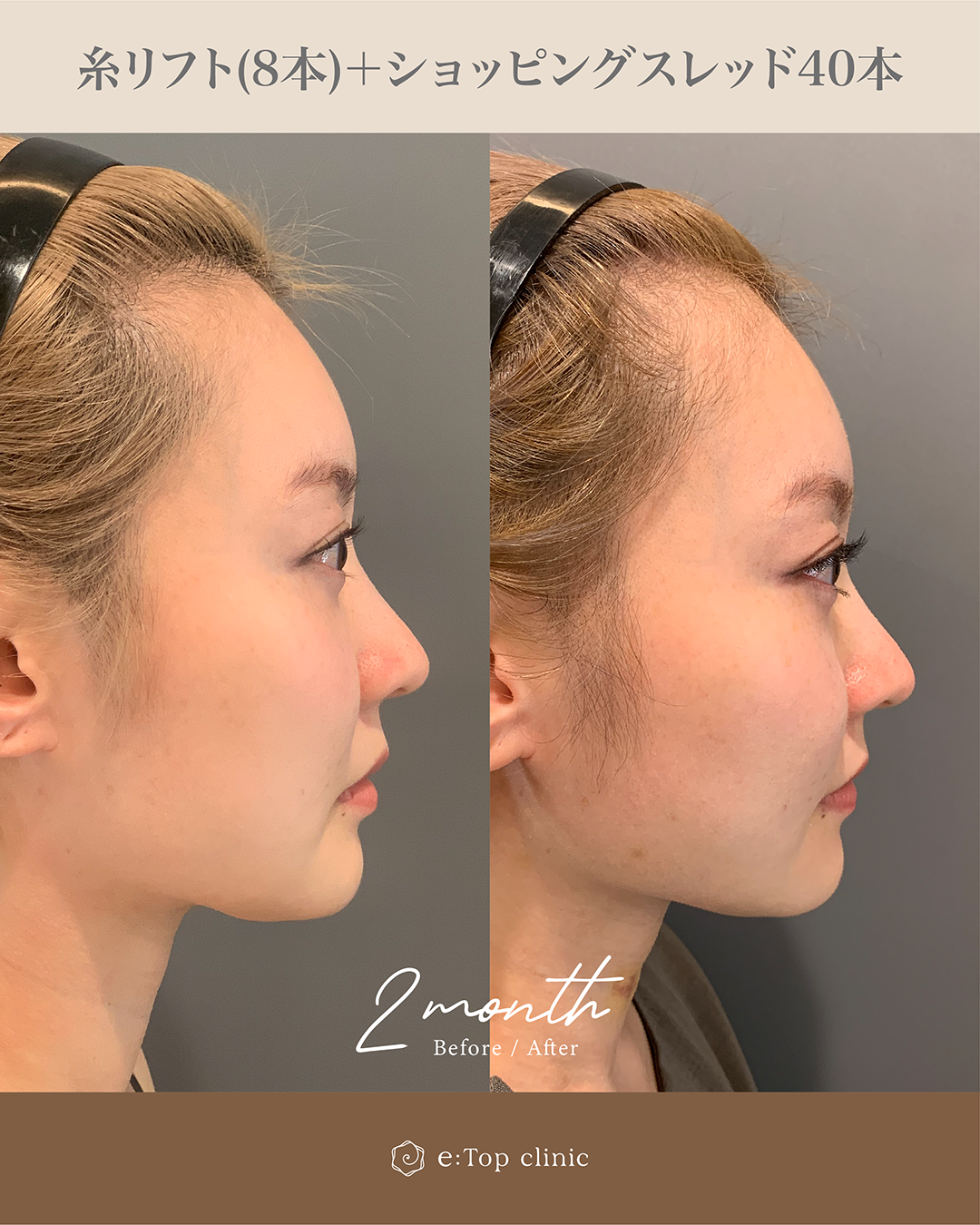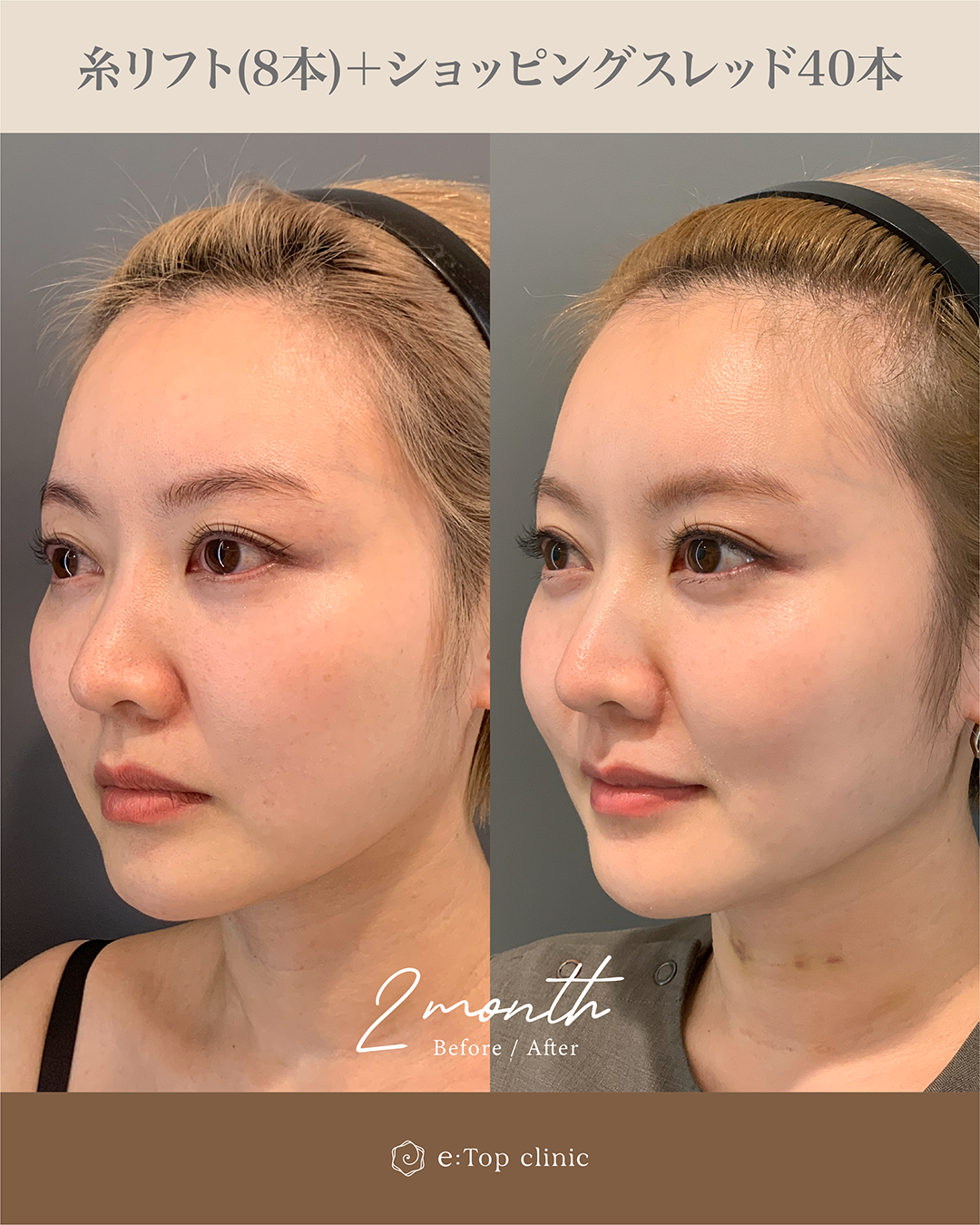 また、肌のハリ感も気になっていらっしゃったため、糸リフトとショッピングリフトを組み合わせて施術を行いました。