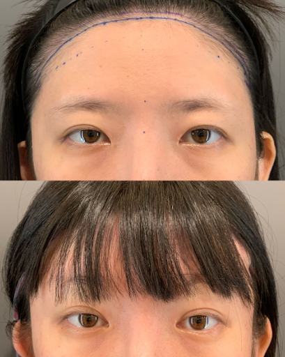 <一眼レフ撮影 切開式前額リフトの傷跡>