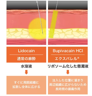 通常の局所麻酔は数時間で効果が切れるため、術後に痛みを感じる場合があります。『e:Top clinic』では、術後の痛みが不安な方へ「エクスパレル」をオプションで追加することが可能です。