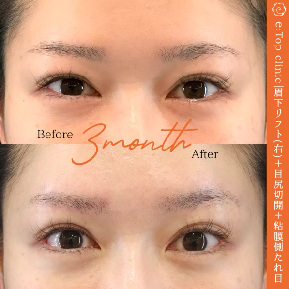 <眉下切開(右のみ)・目尻切開・タレ目形成の症例>