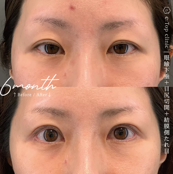 <眼瞼下垂・目尻切開・たれ目形成を行った30代女性>