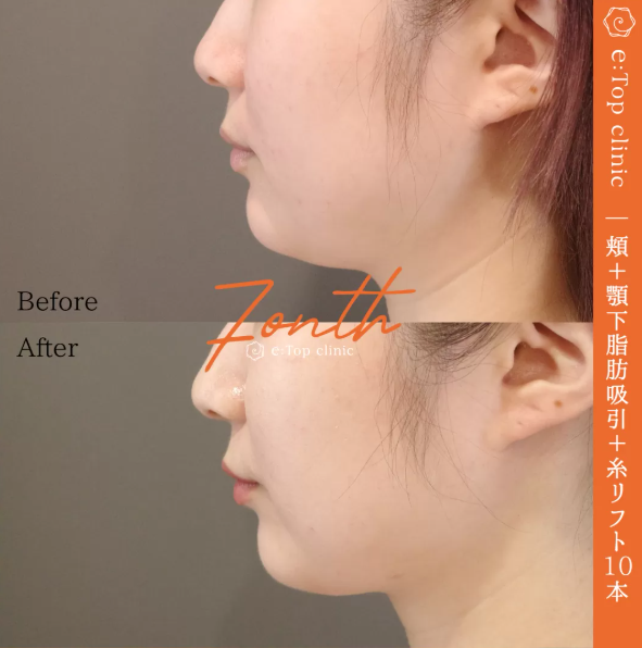 料金(自由診療):頬・顎脂肪吸引+糸リフト10本トータル¥699,000(税込)+別途麻酔代¥55,000(税込) リスク・副作用:だるさ・熱感・頭痛・蕁麻疹・痒み・むくみ・発熱・咳・冷や汗・胸痛、顔の雰囲気の変化、施術箇所の知覚の麻痺・鈍さ、しびれ、傷痕のもり上がり・凹み・色素沈着、タルミが残る、仕上がりに左右差などを生じることがあります。