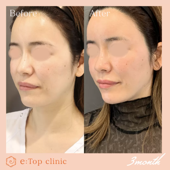 そのため、30代でフェイスラインの軽度なたるみを改善する目的であっても、片側につき最低でも3〜5本程度(計6本〜10本)を目安に、たるみを引き上げることが一般的です。