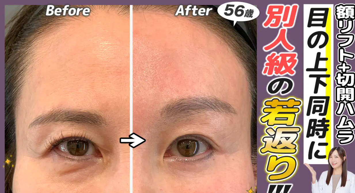 同時手術の最大のメリットは、顔上部全体を一度にリフトアップできるため、明らかな若返り効果を実感することができます。額からこめかみまでをトータルで引き上げることで、バランスの取れた自然な若返りが実現できます。